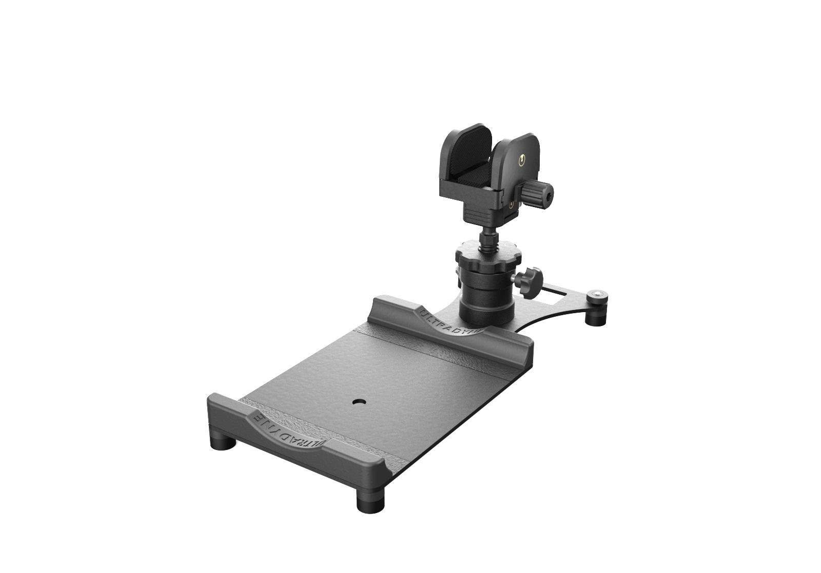 The Ultradyne Launch Pad is designed to reduce recoil and maintain the natural interface between the rifle and shooter. It features a 3/8-16 thread at the top of a 7/8-inch solid steel vertical adjustment bolt that is compatible with most ballheads and gun vises. The Launch Pad is especially effective in combination with the Ultradyne Orbit Ballhead with Dynalock at the range and with the Grasp Gun Vise at the work bench.